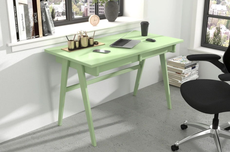 Drewniane biurko / toaletka z szufladami Visby EDDA / kolor pudrowa zieleń / 120x65 cm