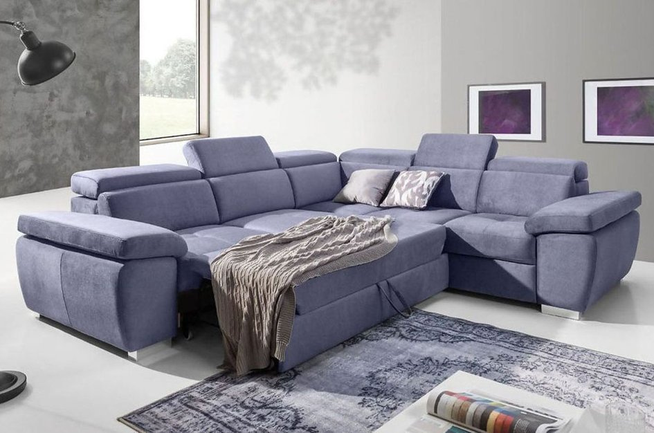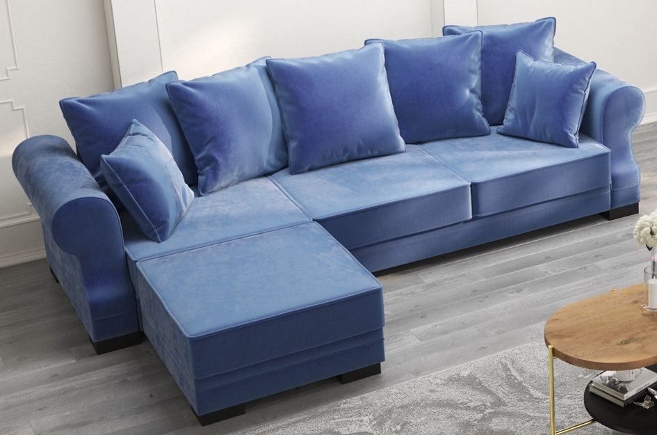 Elegancki narożnik GENEVA w angielskim stylu z funkcją spania i pojemnikiem na pościel