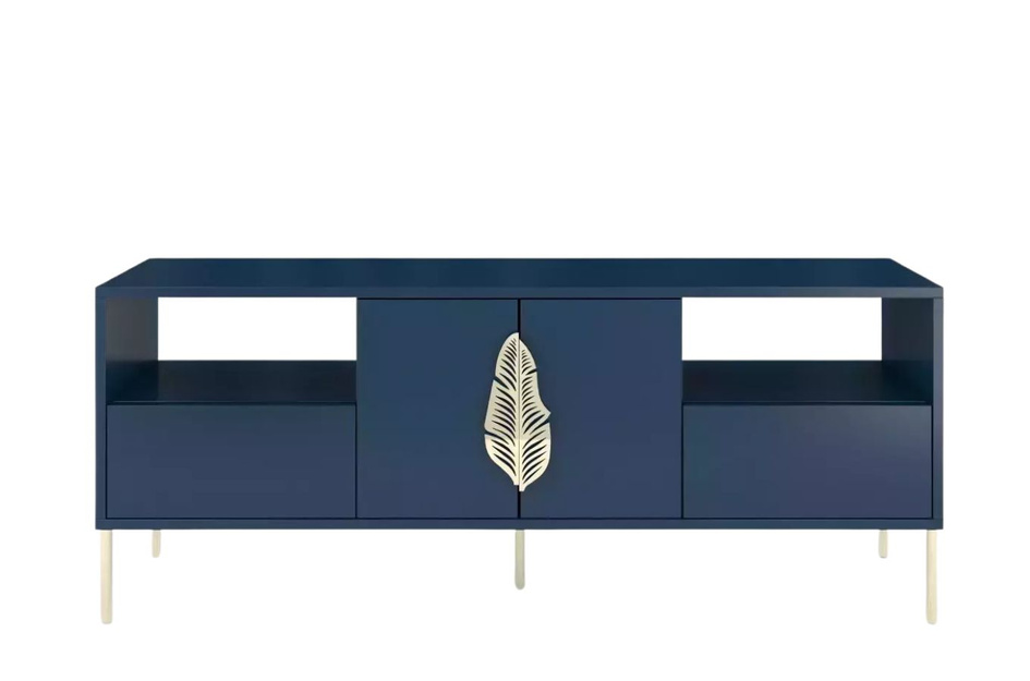 Granatowa komoda RTV Skandica MERLIN ze złotymi dodatkami / szer. 138 cm