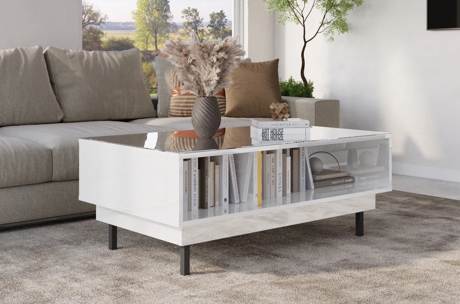 Elegancki biały stolik Dancan ARTEMISA ze złotymi dodatkami