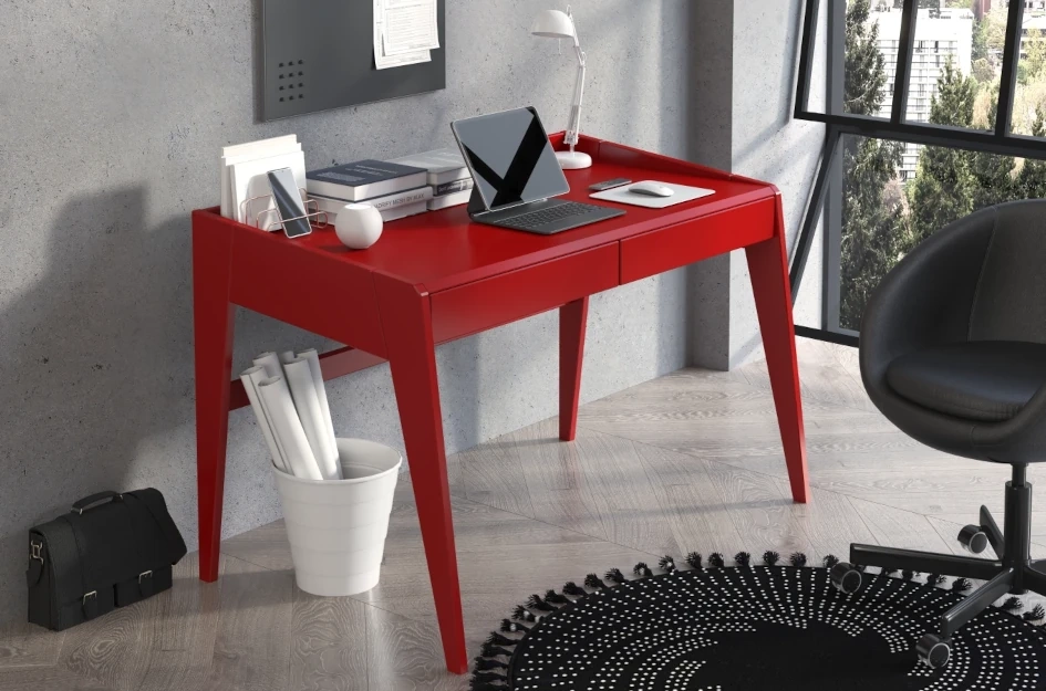 Drewniane biurko / toaletka z szufladami Visby LISA / kolor bordowy / 125x70 cm