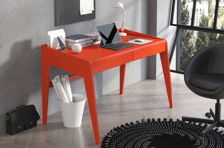 Drewniane biurko / toaletka z szufladami Visby LISA / kolor marsala / 125x70 cm