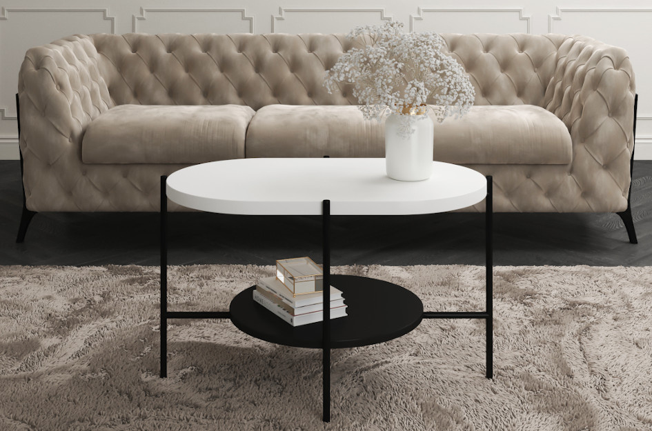 Nowoczesny stolik kawowy Dancan ARENA / czarna podstawa + biały i czarny blat