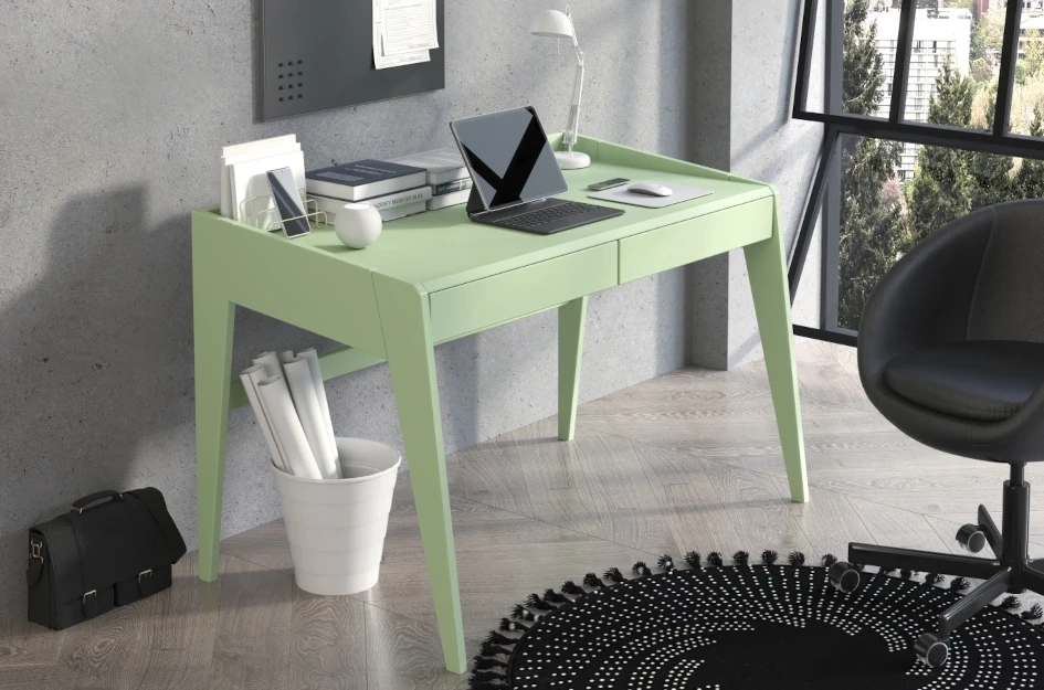 Drewniane biurko / toaletka z szufladami Visby EDDA / kolor pudrowa zieleń / 120x65 cm