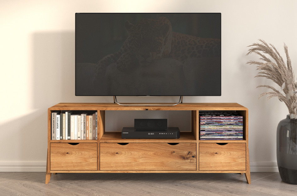 Drewniana szafka RTV dębowa Visby GDYNIA na nóżkach / szer. 160 cm