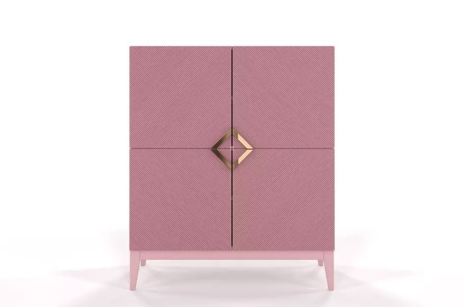 Drewniana komoda z łukami Visby OLIMPIA HIGH / kolor pudrowy róż / szer. 80 cm